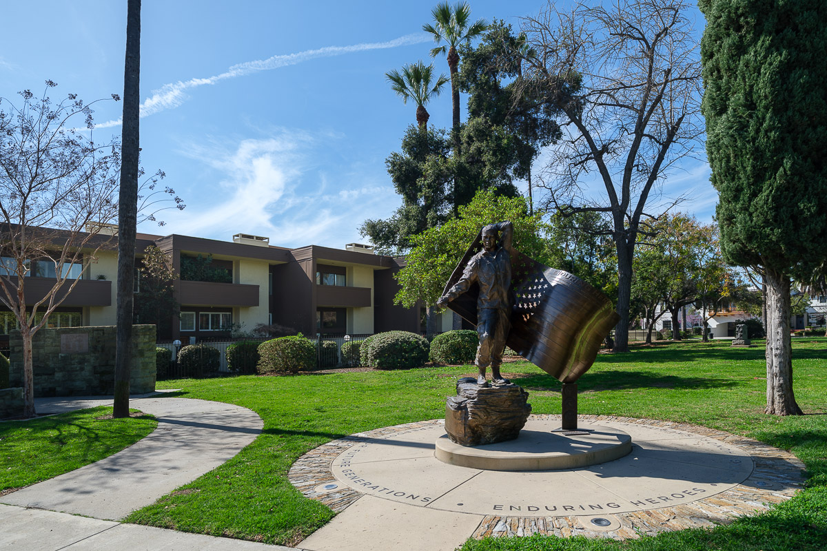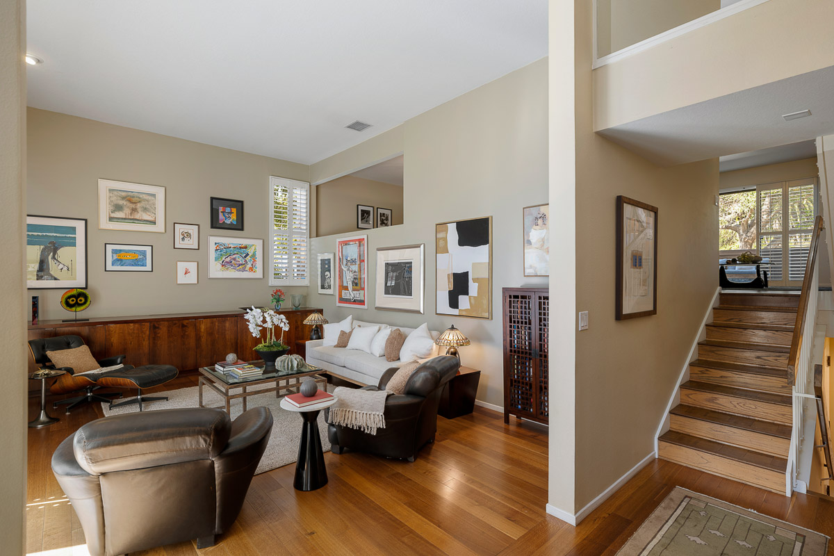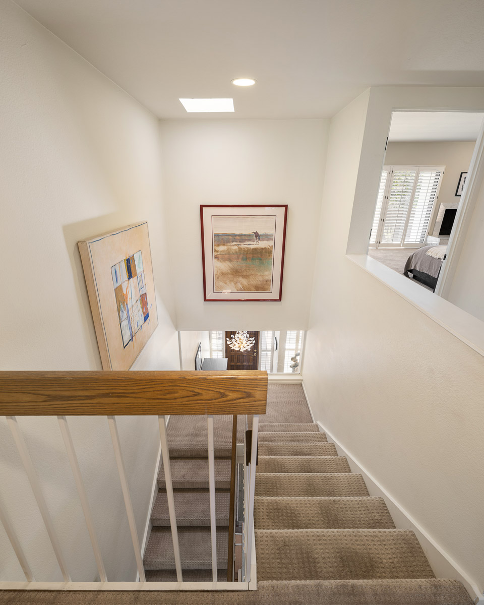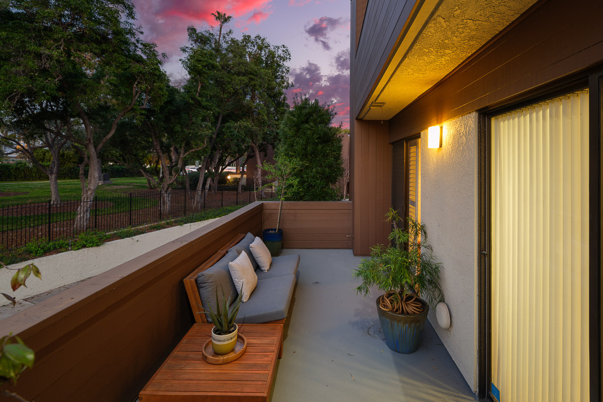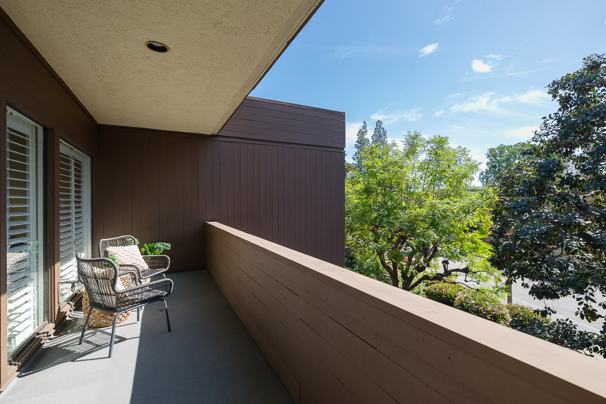 Step inside to find an expansive living room with soaring two-story ceilings, a stately, central fireplace and an adjoining, spacious patio that is ideal for entertaining friends, dining under the starts or simply relaxing with your morning coffee. The formal dining room opens to the remodeled kitchen with high-end appliances, a peninsula with seating and ample cabinet space. A cozy den has tall glass doors, that lead out to a wide side patio that overlooks the verdant Defender’s Park below. The space makes for a perfect reading nook, TV lounge, or home office. The sumptuous primary suite includes its own fireplace, a luxurious updated bath, a custom walk-in closet, and access to a second balcony with views that frame the natural surrounding beauty while offering zen-like privacy. The additional light-filled, bedroom offers an en-suite bath which is perfect for visiting guests.