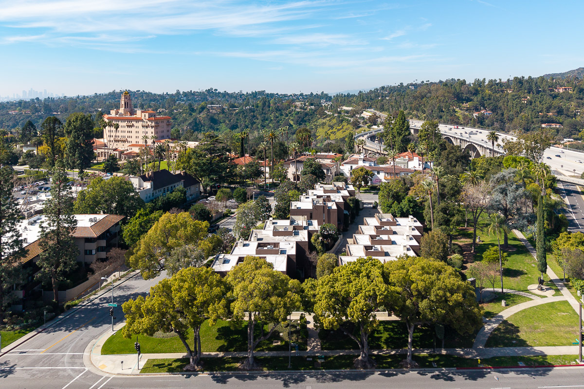 Welcome to one of Pasadena’s most desirable neighborhoods—the magnificent Orange Grove Boulevard or “Millionaire’s Row.” This sophisticated, architectural townhome is nestled in a boutique, 13-unit complex and exemplifies pride of ownership. The two bedroom, three bath end unit, plus a den, marries the best of all worlds in its blend of comfort, style and location, all with an eye towards a stunning aesthetic. This light-filled end unit is wrapped in windows and offers tree-top views from every space.